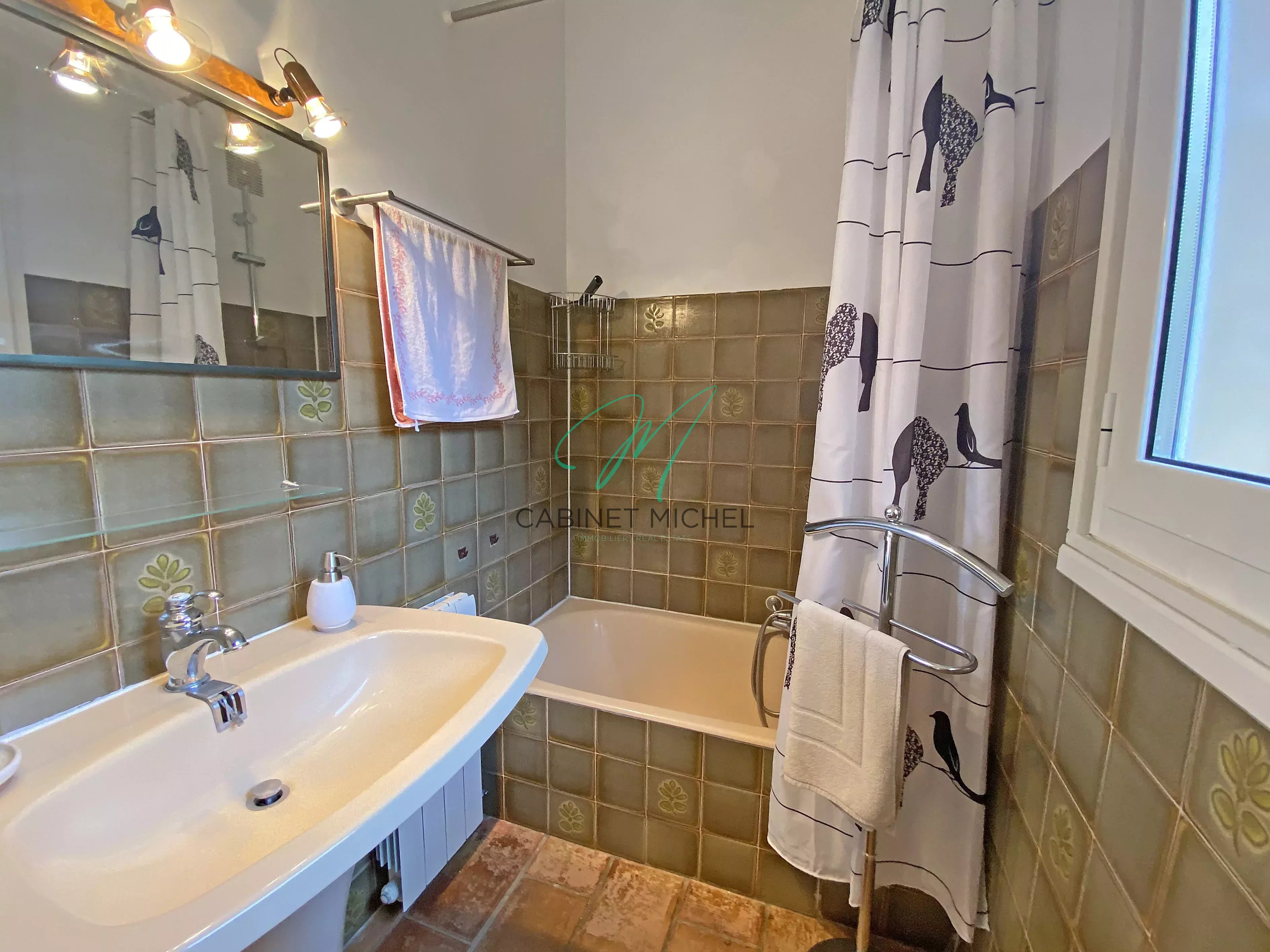 En rez-de-jardin, elle se compose d’une entrée, d’un séjour lumineux avec coin cheminée ouvrant sur une terrasse, d’une cuisine aménagée, d’une chambre, d’une salle de bains avec douche, d’un WC indépendant et d’un débarras.